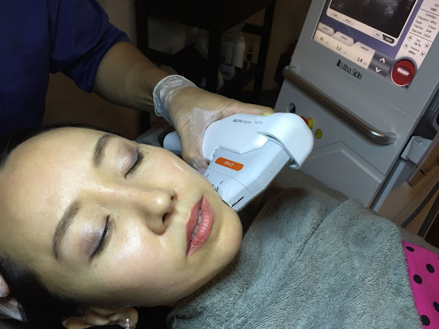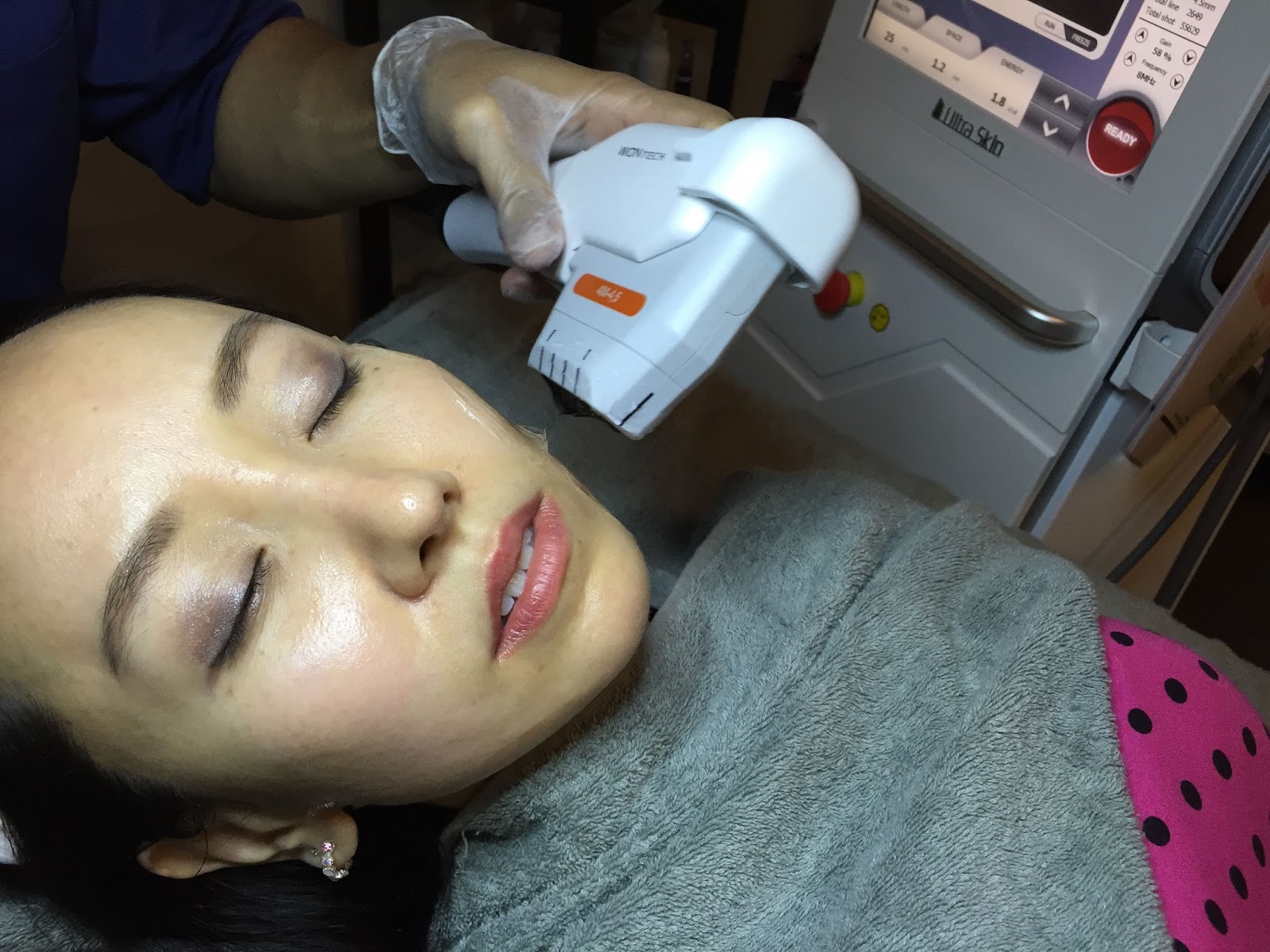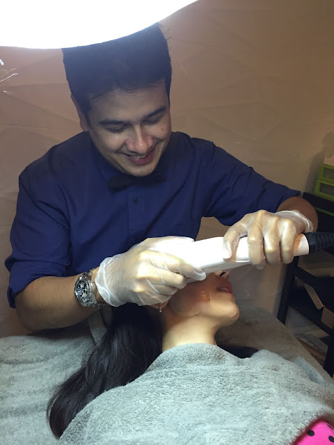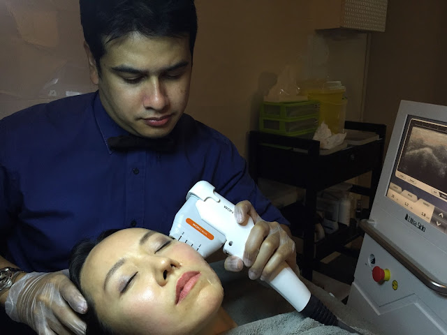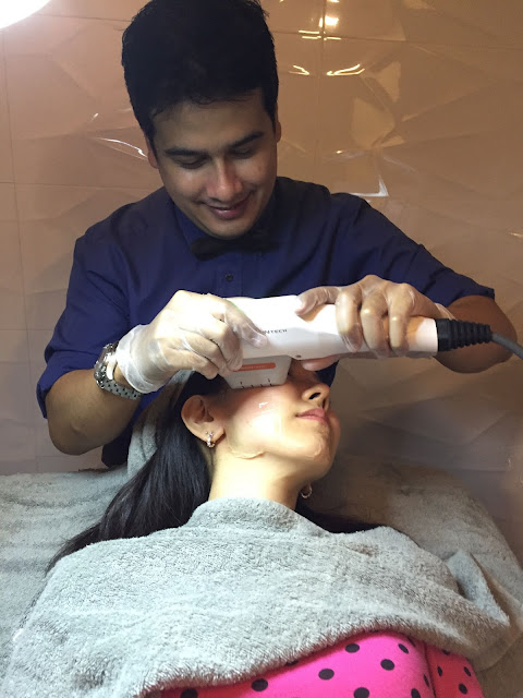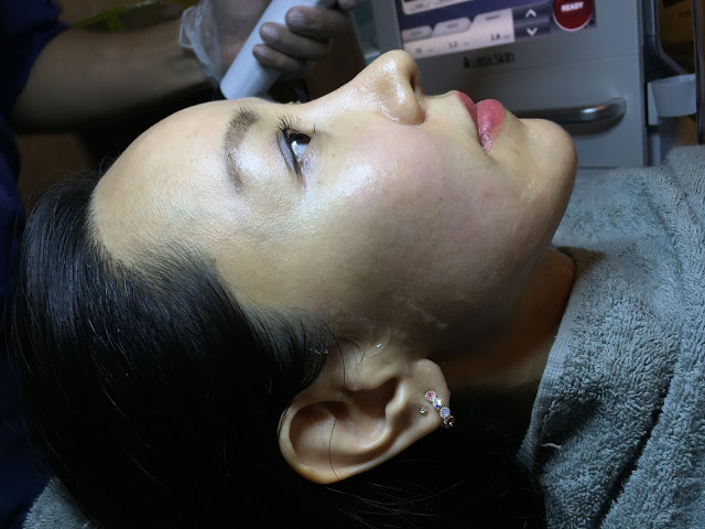 Afterwhich, Dr Fin proceeded with the HiFu AgeTite Treatment. A layer of gel was applied to half of my face first as we wanted to do half the face to show the lifting effect compared to the other half which would be untouched. He said that the intensity of the treatment ranged from 1-10. 1 being the least intense and 10 being the most intense. He started with a 8 as I told him I was not worried about any pain and I wanted to see the maximum lift if possible.
