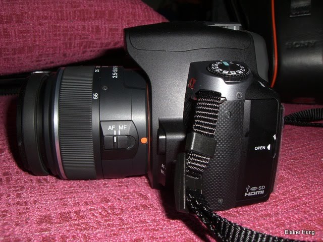Ta da…. This is its new home. Daddy said that he has to dismantle the lens from the body if he were to put his darling(not ME!!) into the free Sony bag, so he went to Funan IT Mall to buy another Sony camera bag. I think this costs close to about S$100. Gosh…now he is thinking of buying the rechargeable battery pack. Think sooner or later, he will think of buying other accessories like the flash.