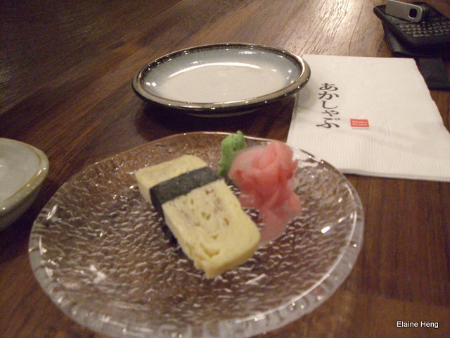 Had to take a bite before my training. As I only had about 30 mins, we decided to go somewhere nearby to take a quick bite and ended up in this Japanese restaurant in Funan IT Mall. Initially, I was drawn to the big banner outside as it stated S$1. I thought one plate of sushi costs only S$1!!! What a bargain! Only when we got in, I realise that one piece of sushi costs S$1 or more.