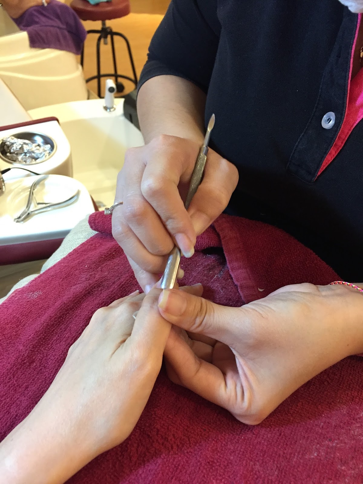 The manicurist worked on removing my previous gelish nail polish first.