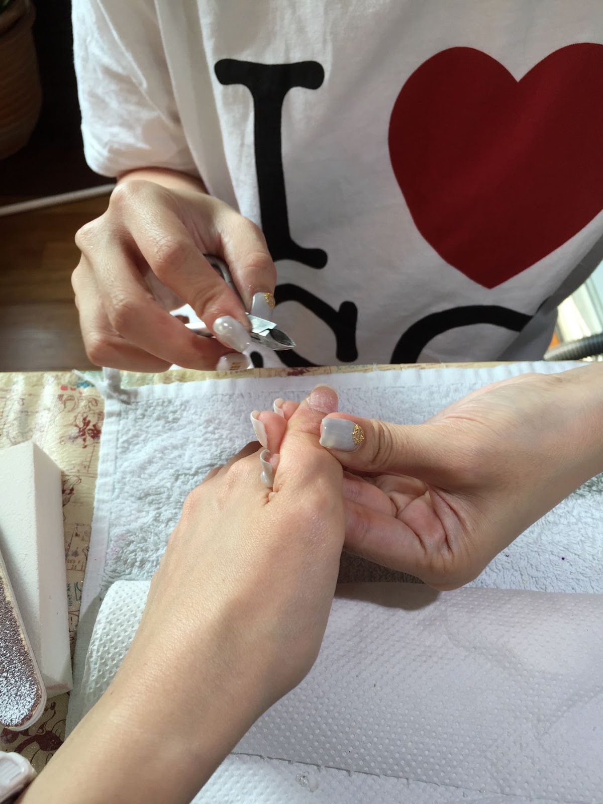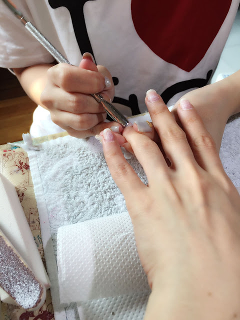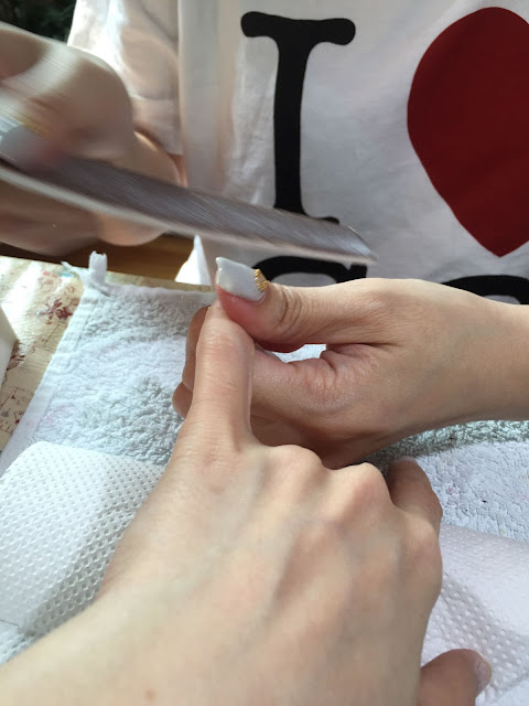 As I had gelish nail polish on my nails before, she had to remove the previous nail polish before she can start working on my nails.