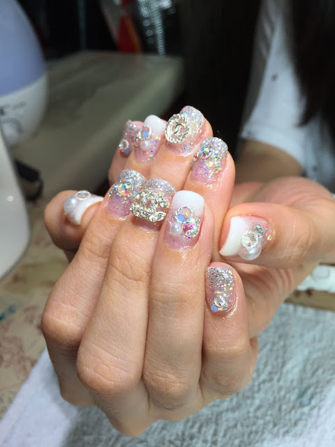 There were a few more steps, like putting the hand into the UV dryer applying the gelish nail polish and repeating the steps again, applying the bling bling Swarovski crystals on individual nails etc.