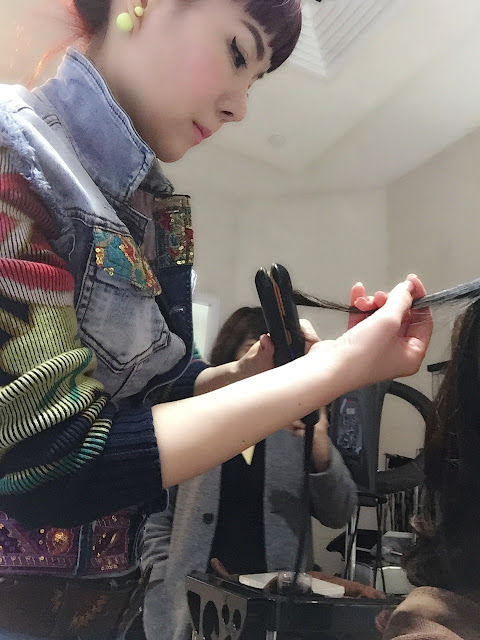 Look at how my beautiful personal hairstylist Soo Bin skillfully used two hairdryers to dry my hair faster.
