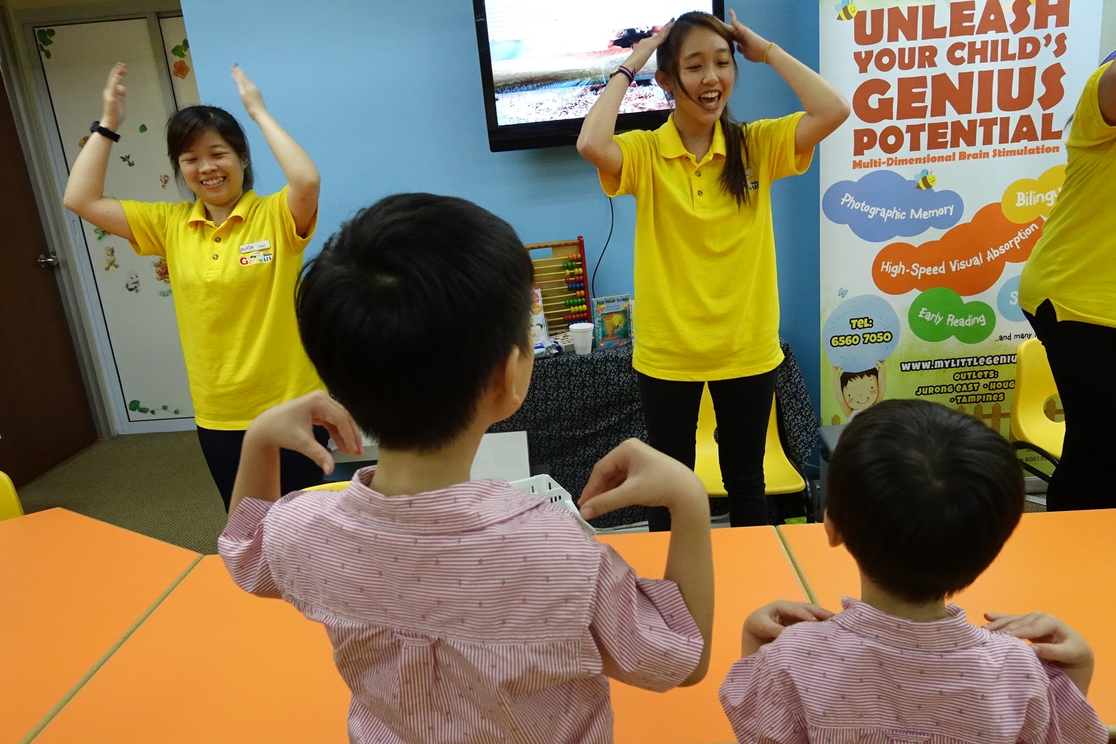 Genius PlaygroundTM exposes the child to many forms of brain stimulation, especially focusing on stimulation through the five senses of sight, hearing, touch, smell and taste. Memory, visualisation and gross/fine motor skills games are played during lessons to enhance the ability of the right brain. Children and parents are also introduced to sign language to learn important keywords to reduce the stress during communication between parents and one-year-olds.