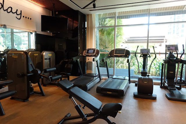 The gym looks very comprehensive with the variety of gym equipment available for hotel guests to use.