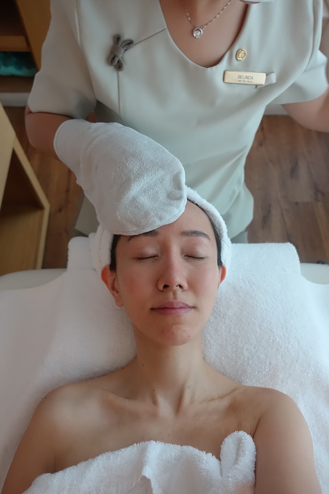 After the first therapist completed the massage session, I was joined by another therapist who specializes in facial therapies.
