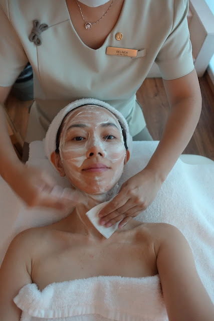 The therapist started off by cleansing my face with Thali White cleansing milk.