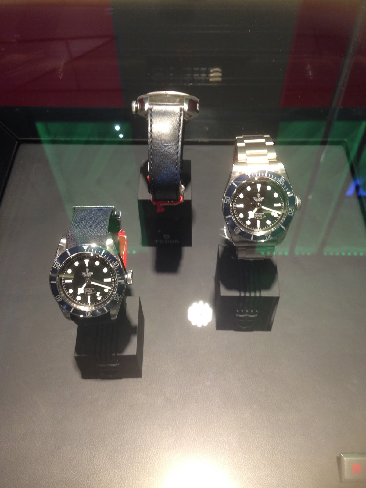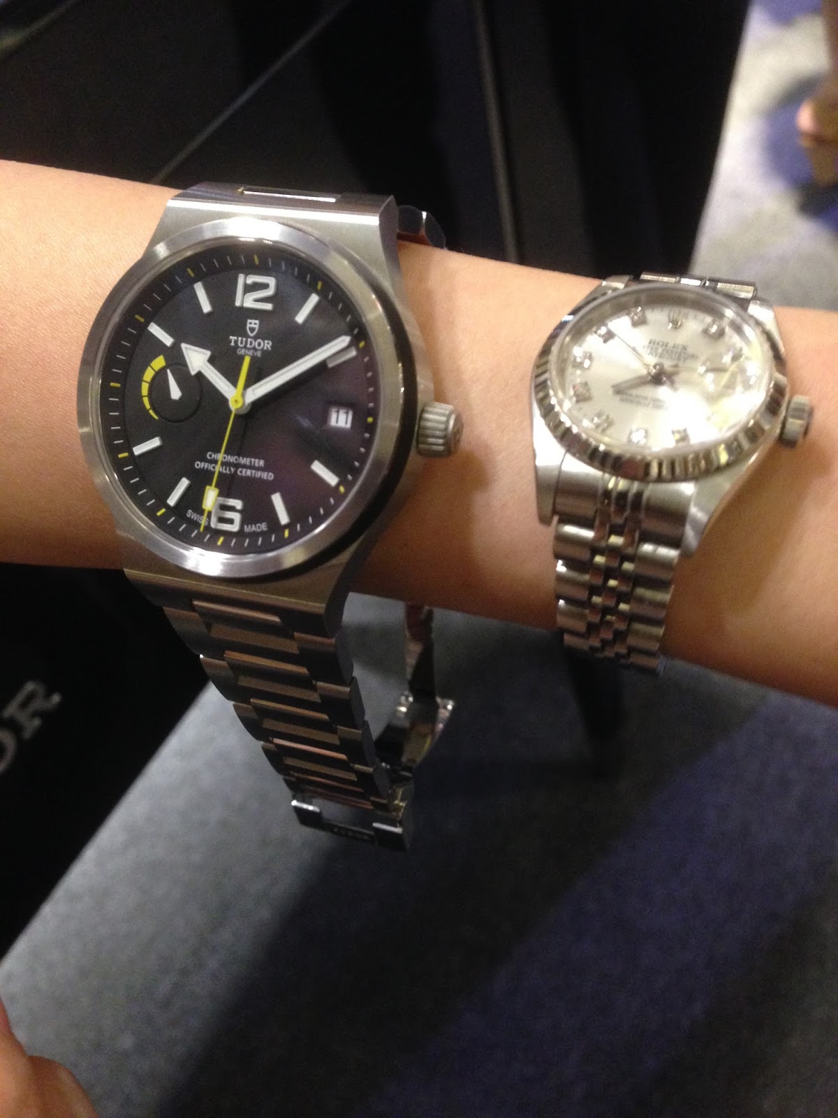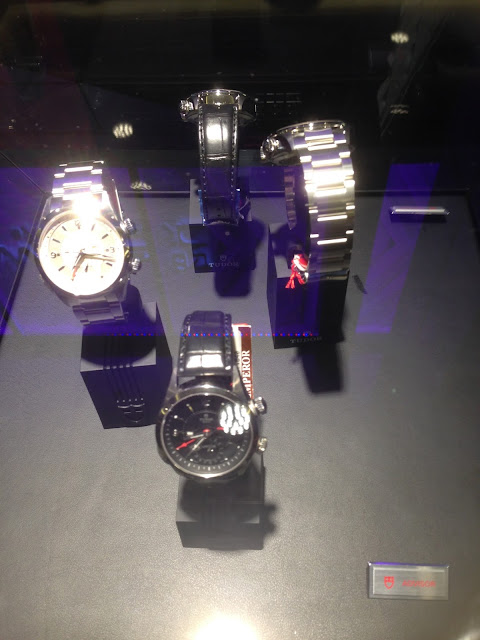 Checking out the Tudor watches. The watches for display were meant for men. Look at the size of the Tudor watch compared to my Rolex watch. I guess if a lady’s wrist is quite big, she would be able to fit into one of the Tudor watches. But not me though.